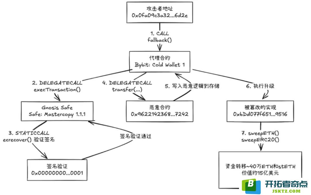 比如,在今年 2 月 21 日,交易平台 Bybit 的链上多签钱包被定向攻破,黑 客利用多签钱包 Safe 合约的 delegatecall 功能植入恶意合约更改了正确的合约逻辑,使签名验证者在前端看到了看似合法,实则欺诈的交易,最终绕过多签验证机制,将一笔近 15 亿美元的资金转移到了匿名地址。